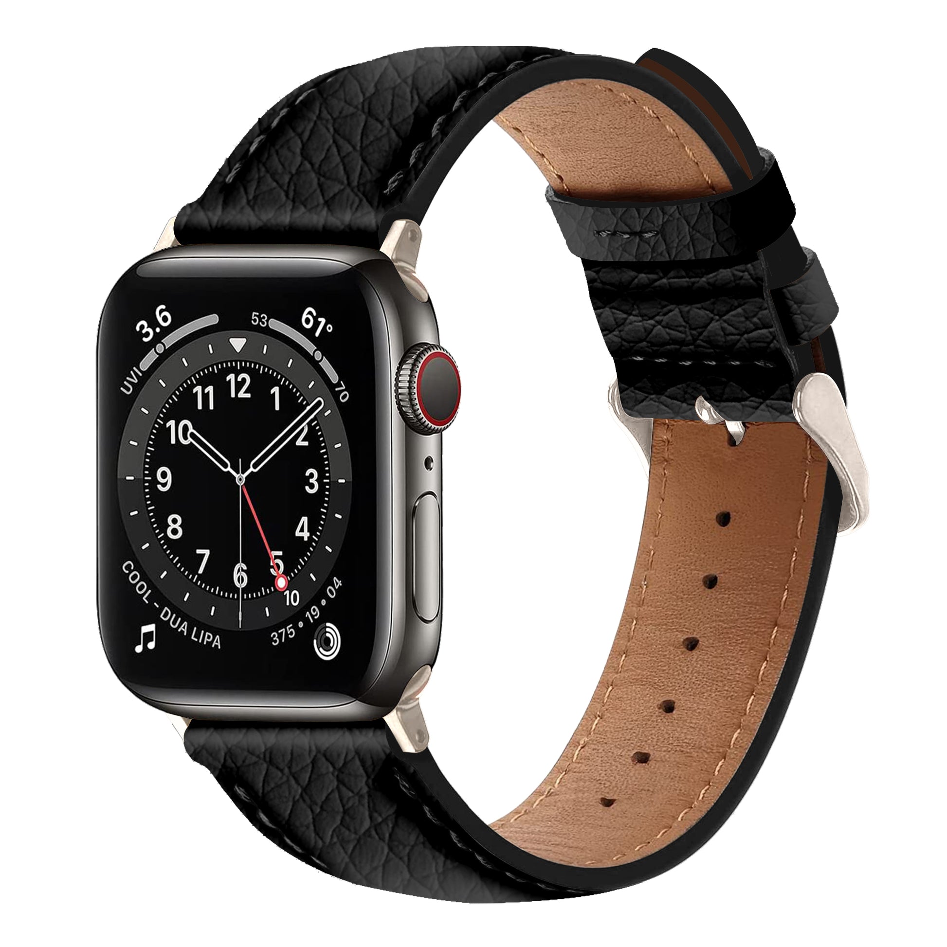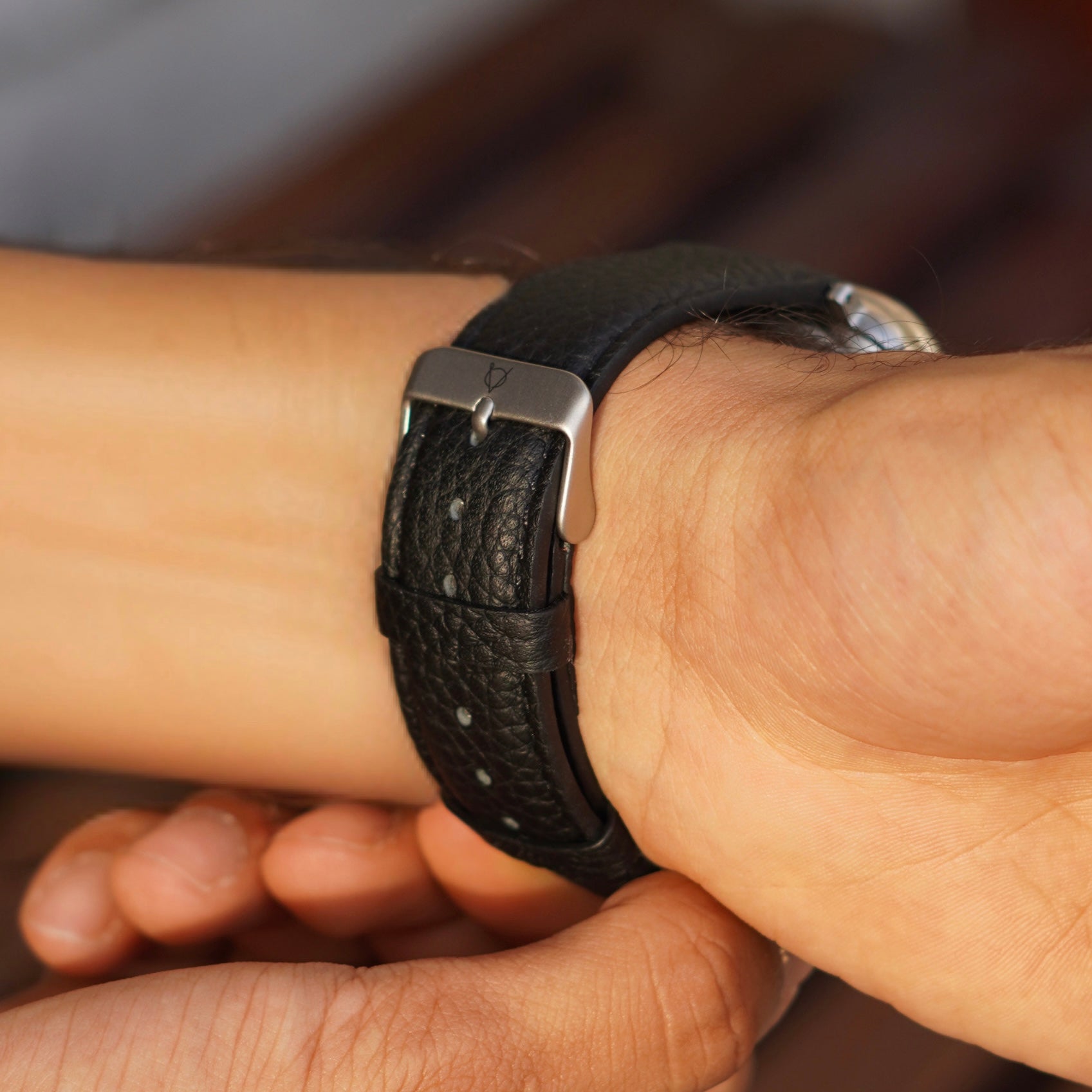 Amur Apple Watch Genuine Leather Strap – Black/Titanium