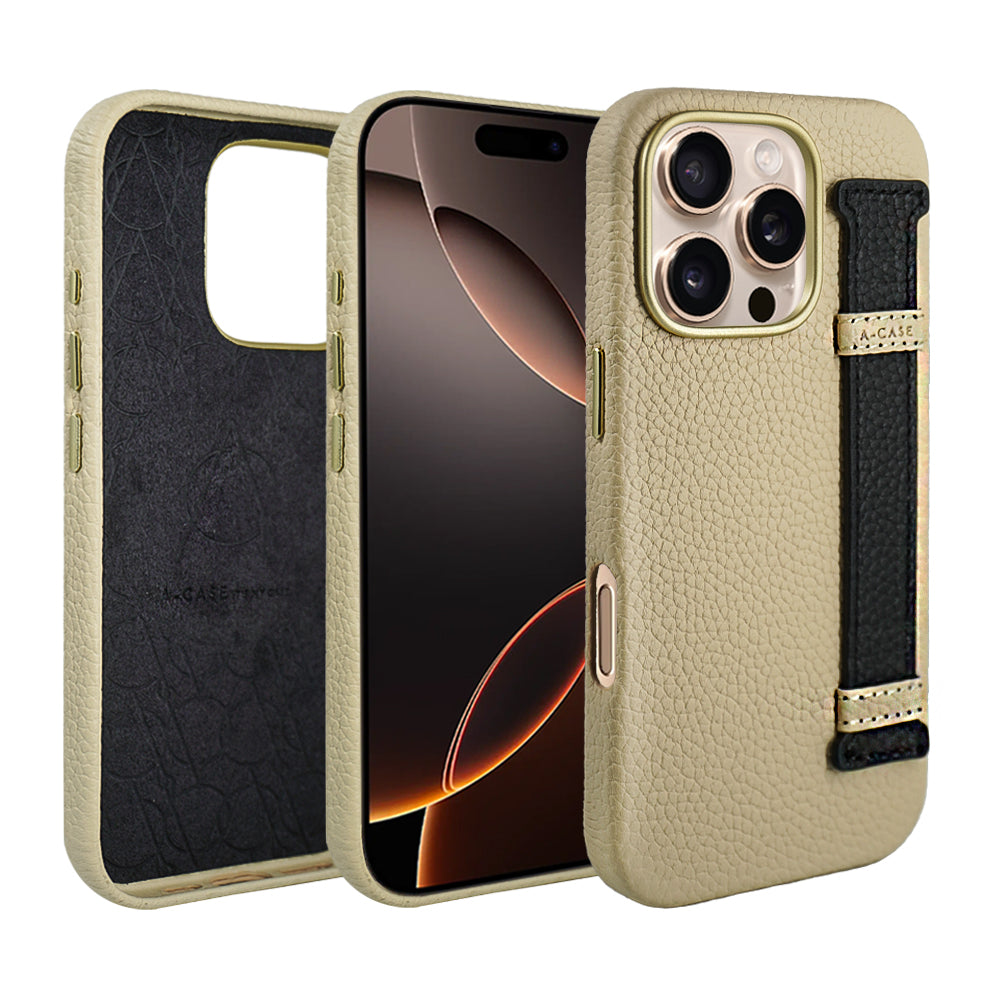 Amur Pro Leather Case For iPhone 16 Series-Beige/Black
