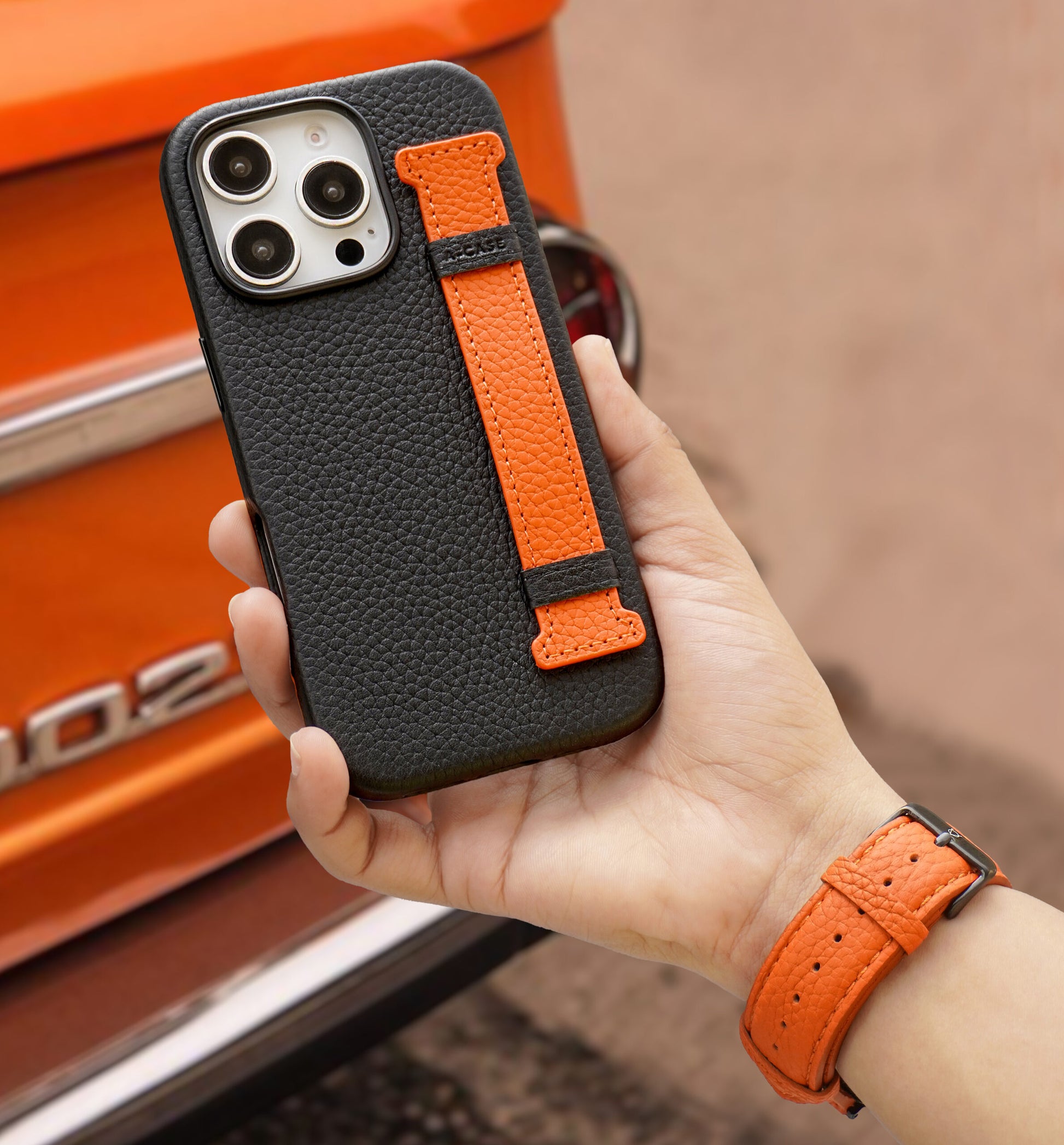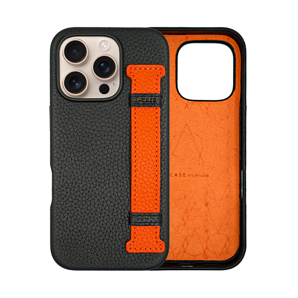 Amur Pro Leather Case For iPhone 16 Series-Black/Orange