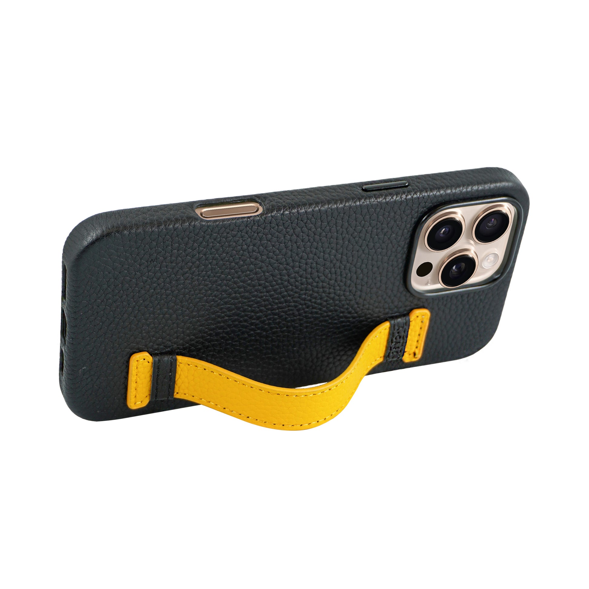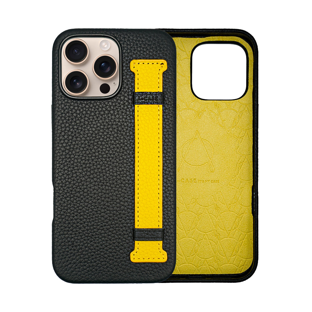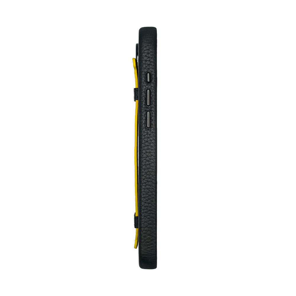 Amur Pro Leather Case For iPhone 16 Series-Black/Yellow