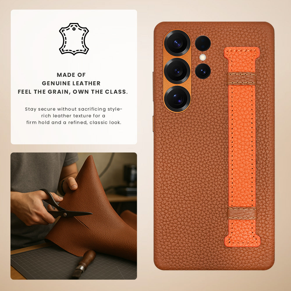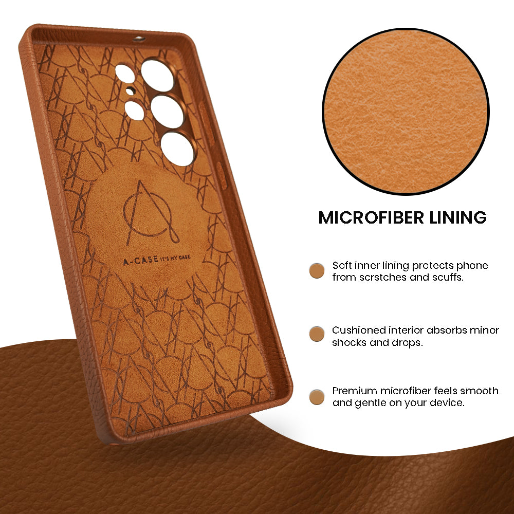 Amur Pro Series A-Case for Samsung Galaxy S25 Ultra - Slim & Lightweight Genuine Leather Case with Magnetic Compatibility and Case-Less Touch Feeling (6.9-Inch)"- Brown/Orange
