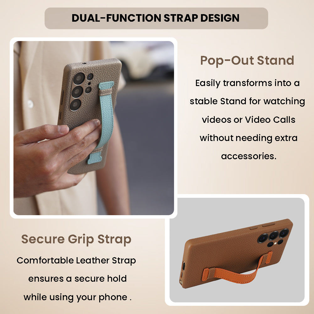 Premium Genuine Leather: Crafted from high-quality, lychee-pattern genuine leather, this case exudes sophistication while offering a soft, comfortable grip. The textured finish not only enhances its luxurious look but also improves durability and resistance to wear.