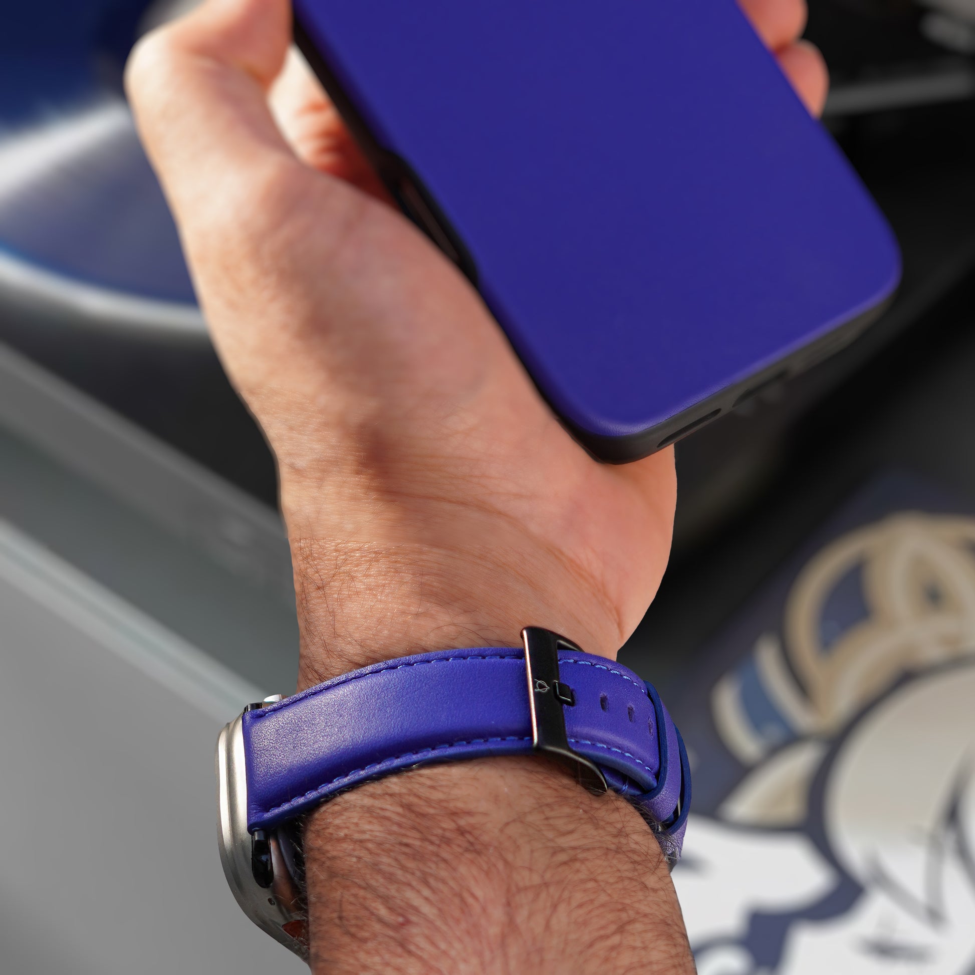 Elmas American Leather Apple Watch Strap with Black Buckle-Blue