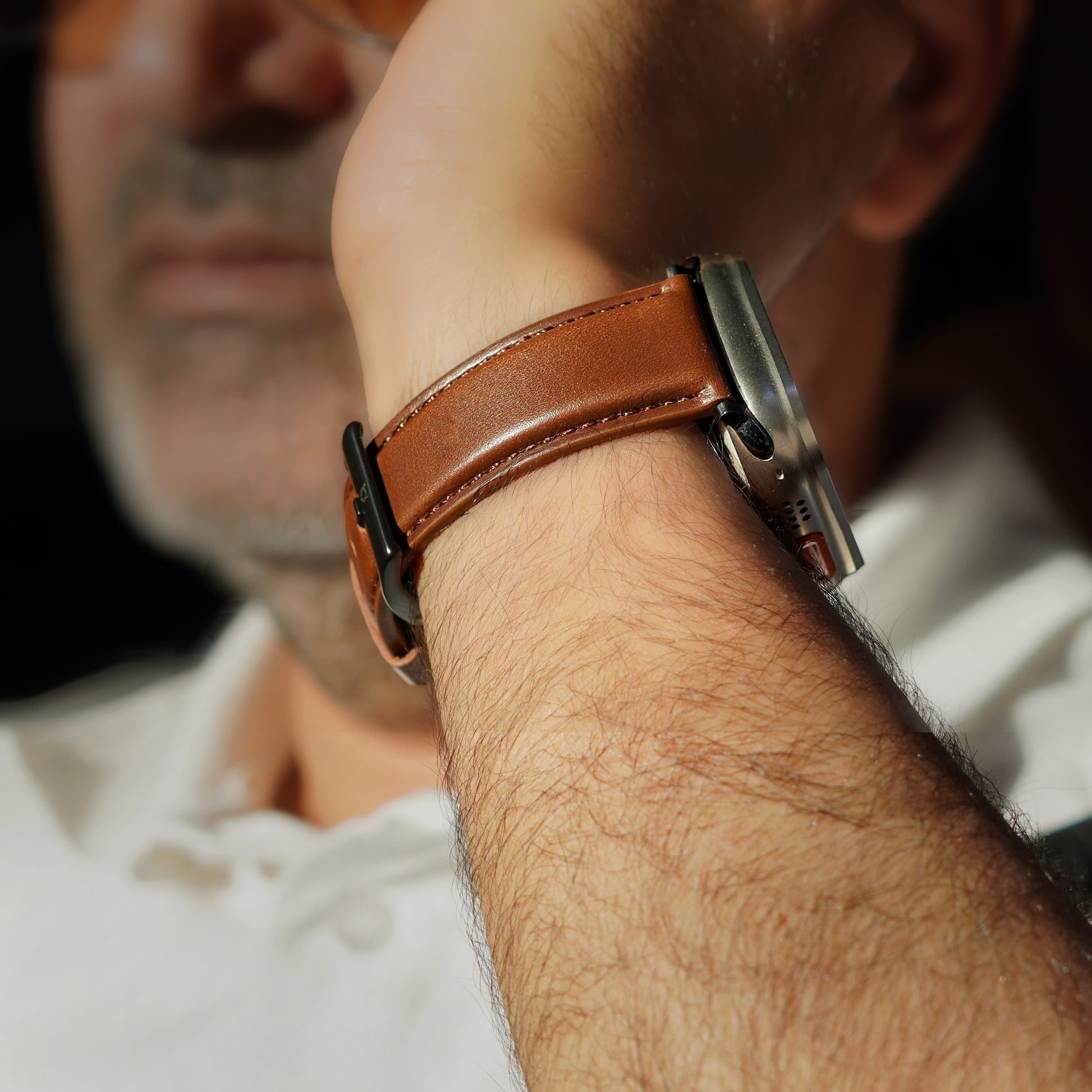 Elmas American Leather Apple Watch Strap with Silver Buckle-Brown