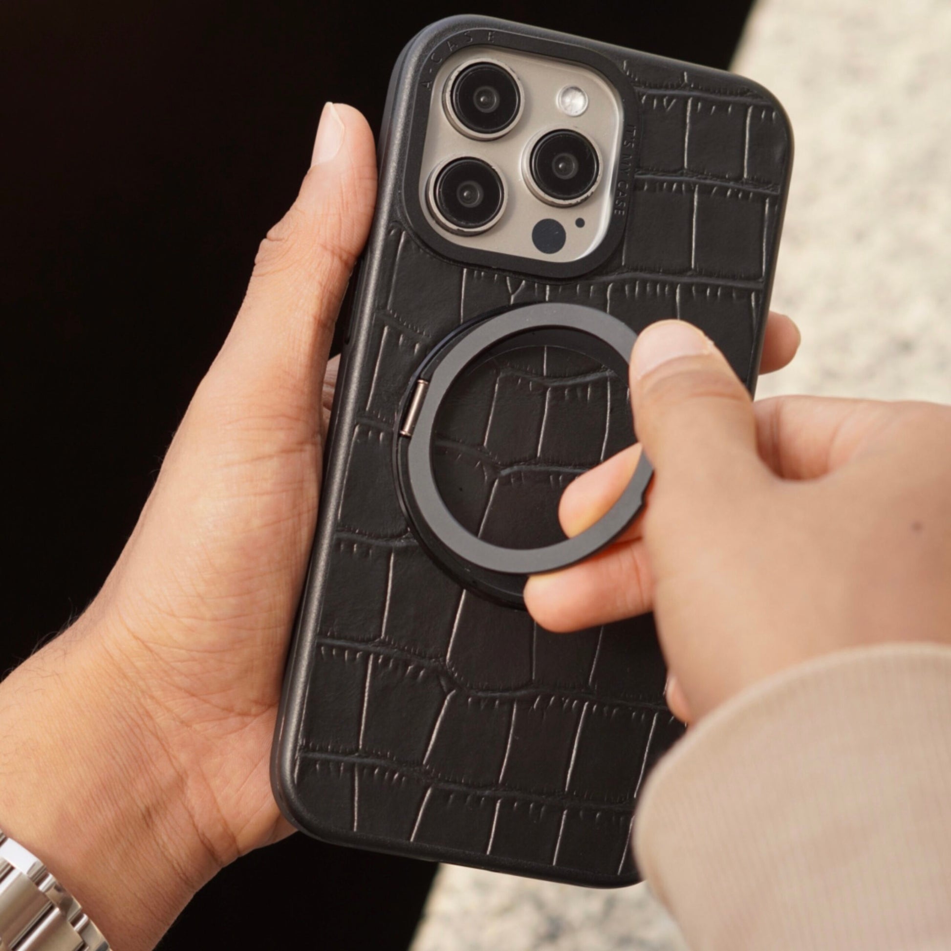 Infinitely Adjustable Kickstand : Free Your Hands , Combining A-CASE exclusive MagSafe technology with the foldable holder, this case sturdily supports your phone in portrait and landscape modes, you can flexibly adjust the viewing angle as you wish.